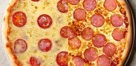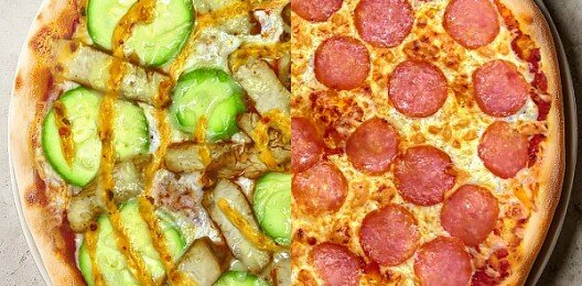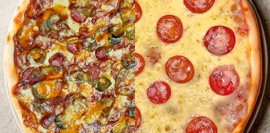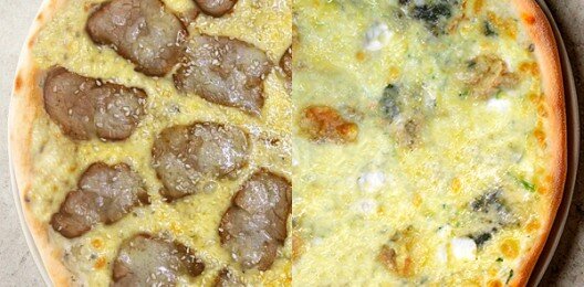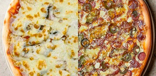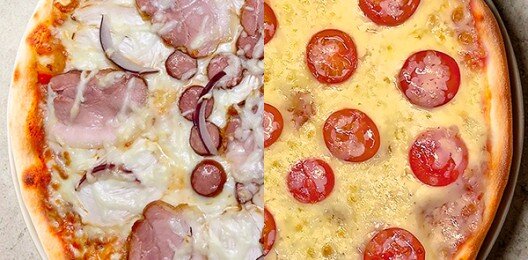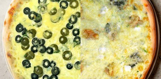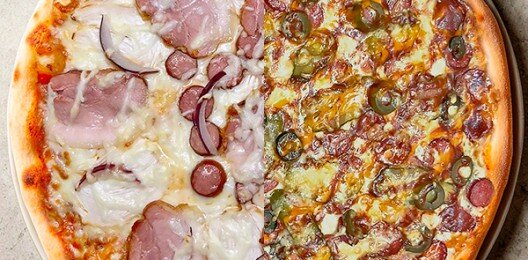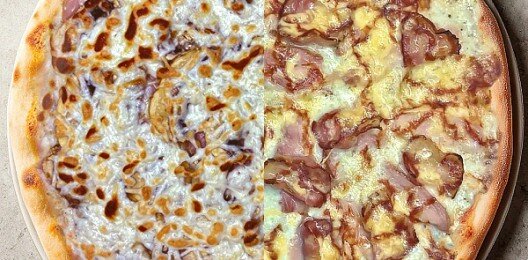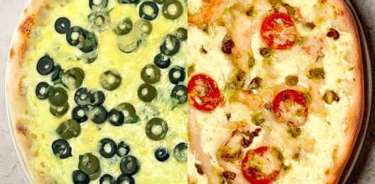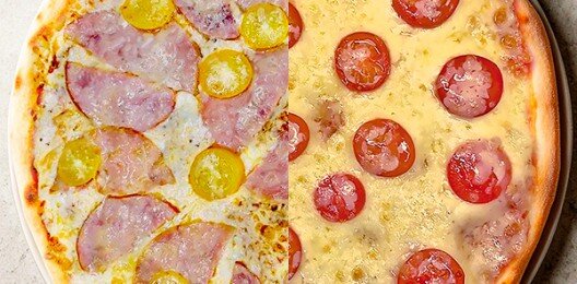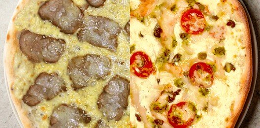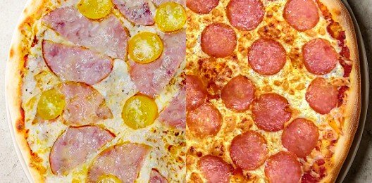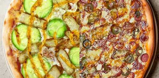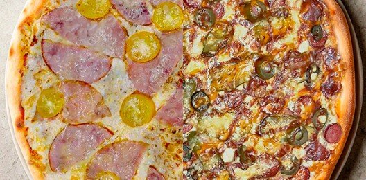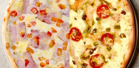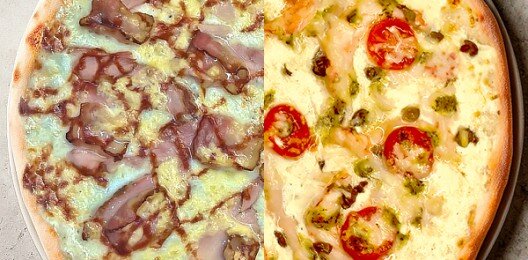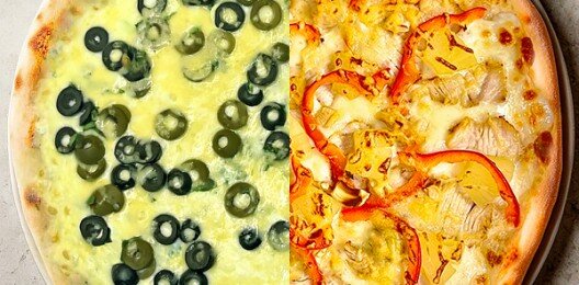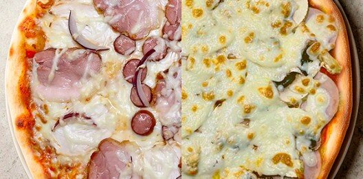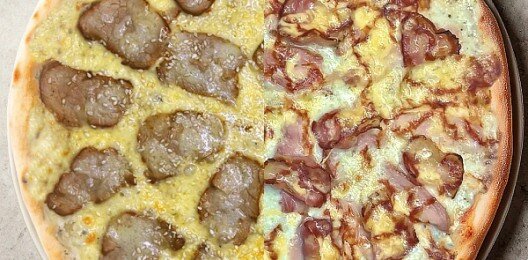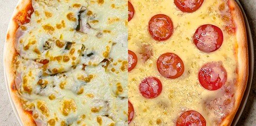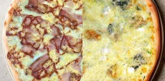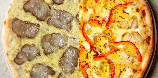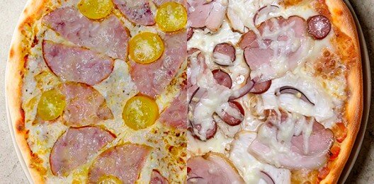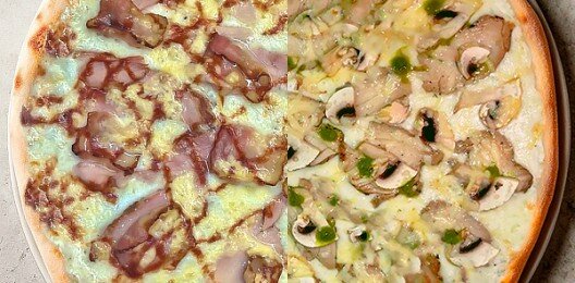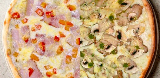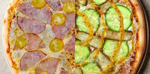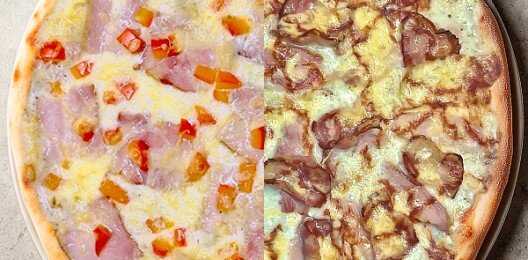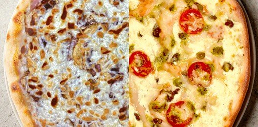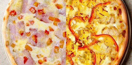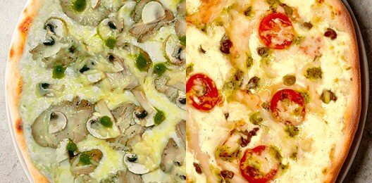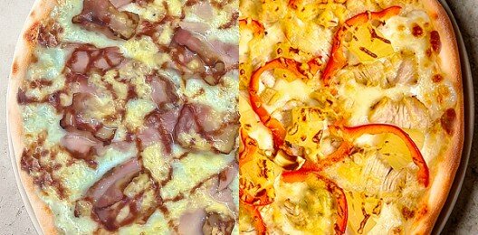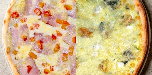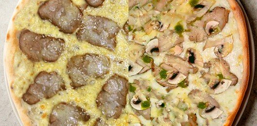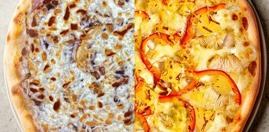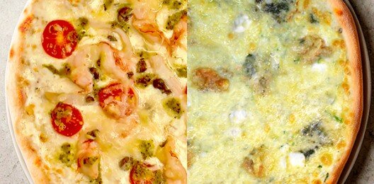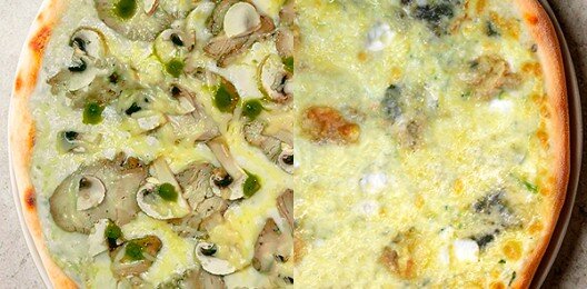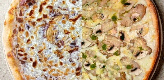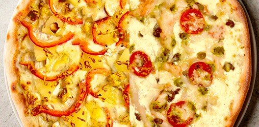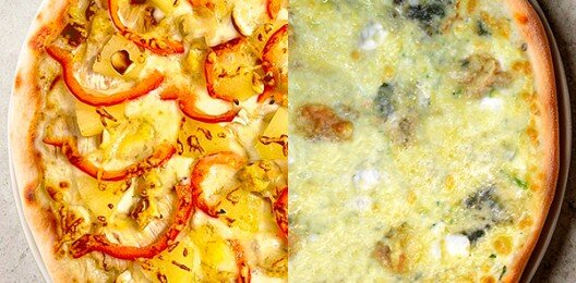 Индейка, шампиньоны, моцарелла, пармезан, песто, фирменный сливочный соус / индейка, ананасы, жёлтый перец, рикотта, кешью, пармезан, моцарелла, фирменный сливочный соус